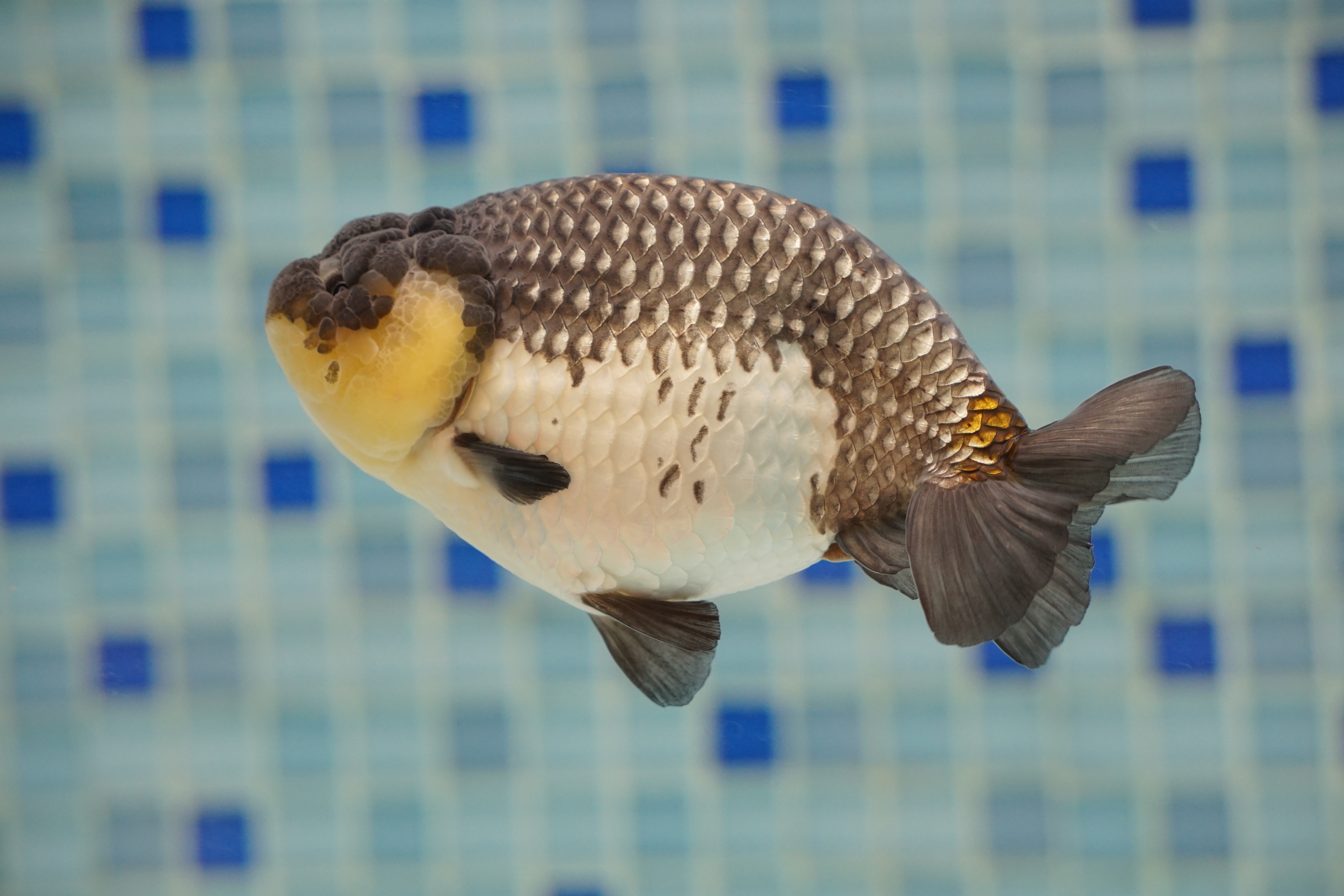 And this is an old file of my blue ranchu. Do you think the scale is ginrin?