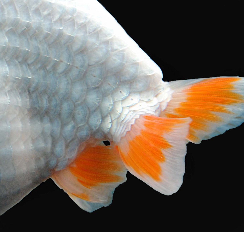 So different from its white sibling, the ginrin scale looks visible in the peduncle area even from the sideview.