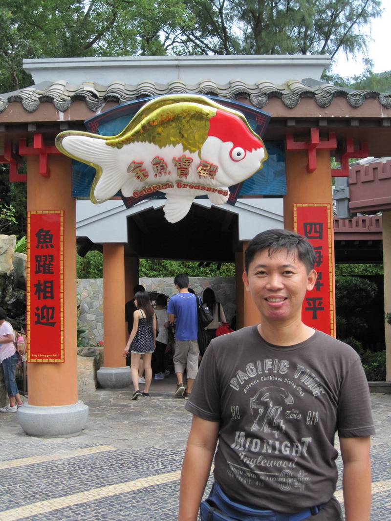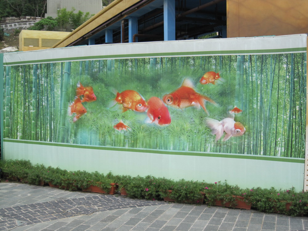 I just browse my old files and find some pictures worth to share. My family and I visited Ocean Park (Hongkong) in 2010. Though the name is Ocean Park, they have a large goldfish section inside. I did not know it before. You can imagine how happy I was when I saw this long wall decorated with goldfish pictures.