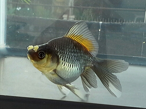 From my experiment to create purple goldfish, I accidentally create panda pompom. This is predictable, since I use chocolate pompom and metallic blue fish as the grandparent. Some blue fishes appear in the offspring. Some have pompom, some do not. But most of the pompom feature are blue also. This one is extraordinary since the pompom feature is white, giving it a good contrast. If today we usually find pompom goldfish with chocolate body and orange pompom features, hopefully we will see more of blue or panda body and white pompom features. I can’t wait to see this piece mature. Enjoy.