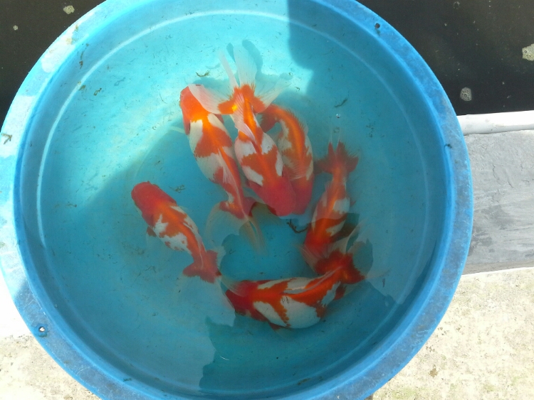 Below is the results of my experiment on pattern building. I am not in the position yet to tell readera what I have been doing. I am still learning. Perhaps later on as I understand more, I will tell. The fishes I used are the oranda that have wakin genetics. They are my F3 from my oranda – wakin cross, which have been crossed back to oranda. I find that most of them are easy to manipulate, but not as easy as wakin. Some from the same batch cannot be manipulated, no matter what I do. Seems that the fish that mutate earlier from its wild color state into red and white is easier to manipulate. The one that takes longer to mutate is harder.