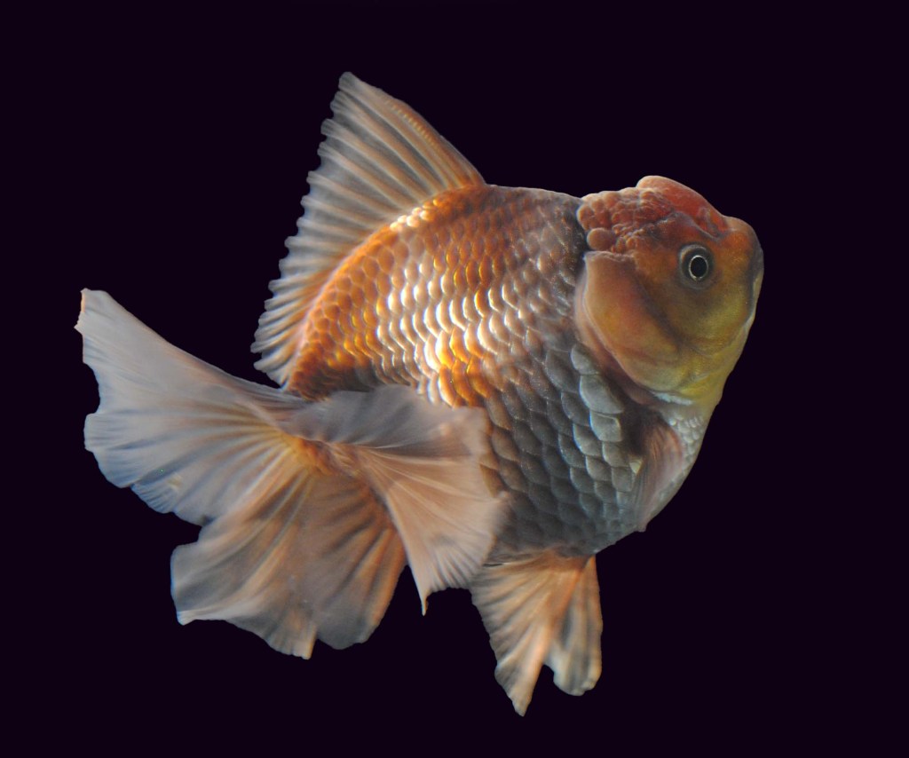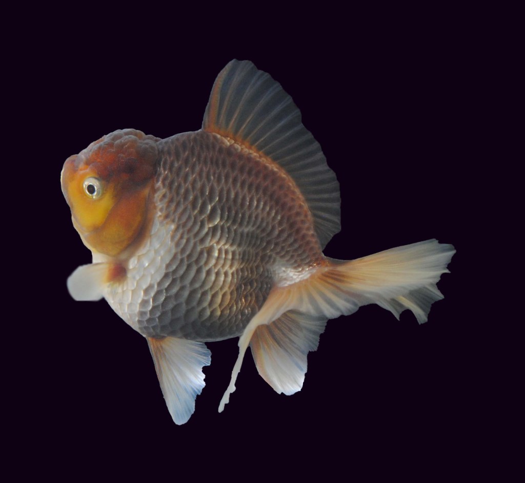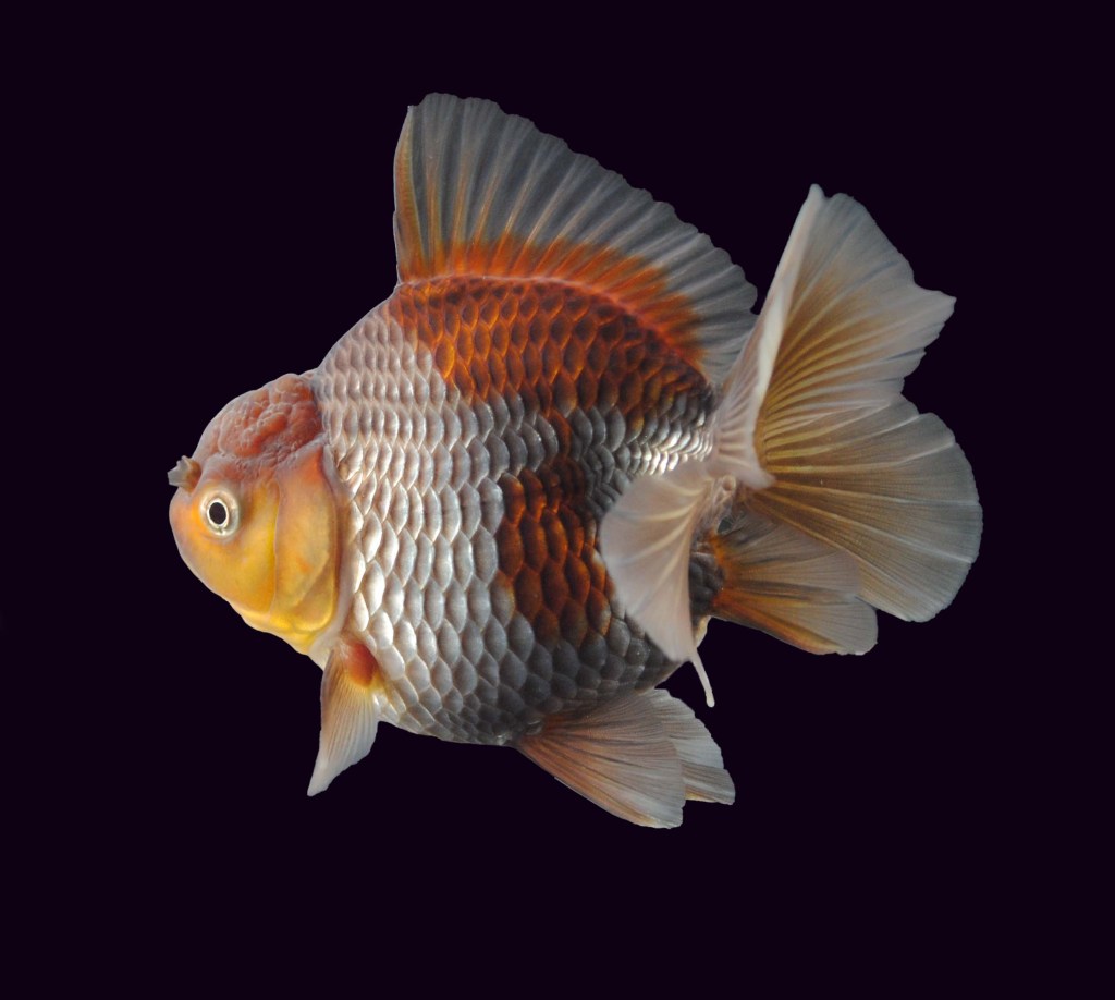 Of course, there is a tricolor (black-red-white) fish in the offspring. The black color almost disappears completely. But this shows that such crossing might yield a tricolor combination. The picture below shows the difference between the black and the brown in red fish.