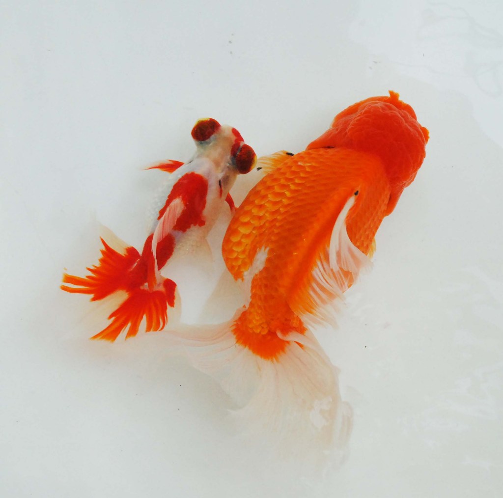 It just occurred to me last year that it might be interesting to cross Sakura Oranda with my Yellow Goldfish. I pictured a goldfish with soft color skin as Sakura Oranda but the color is yellow white instead of red white. But I was not so sure about the upcoming result. Would the cross yield the color I imagined? Or would it be just orangish color which could not be clearly differentiated from the sakura color? Some transparent color goldfish have yellowish color, would my cross yield something differentiable from that?