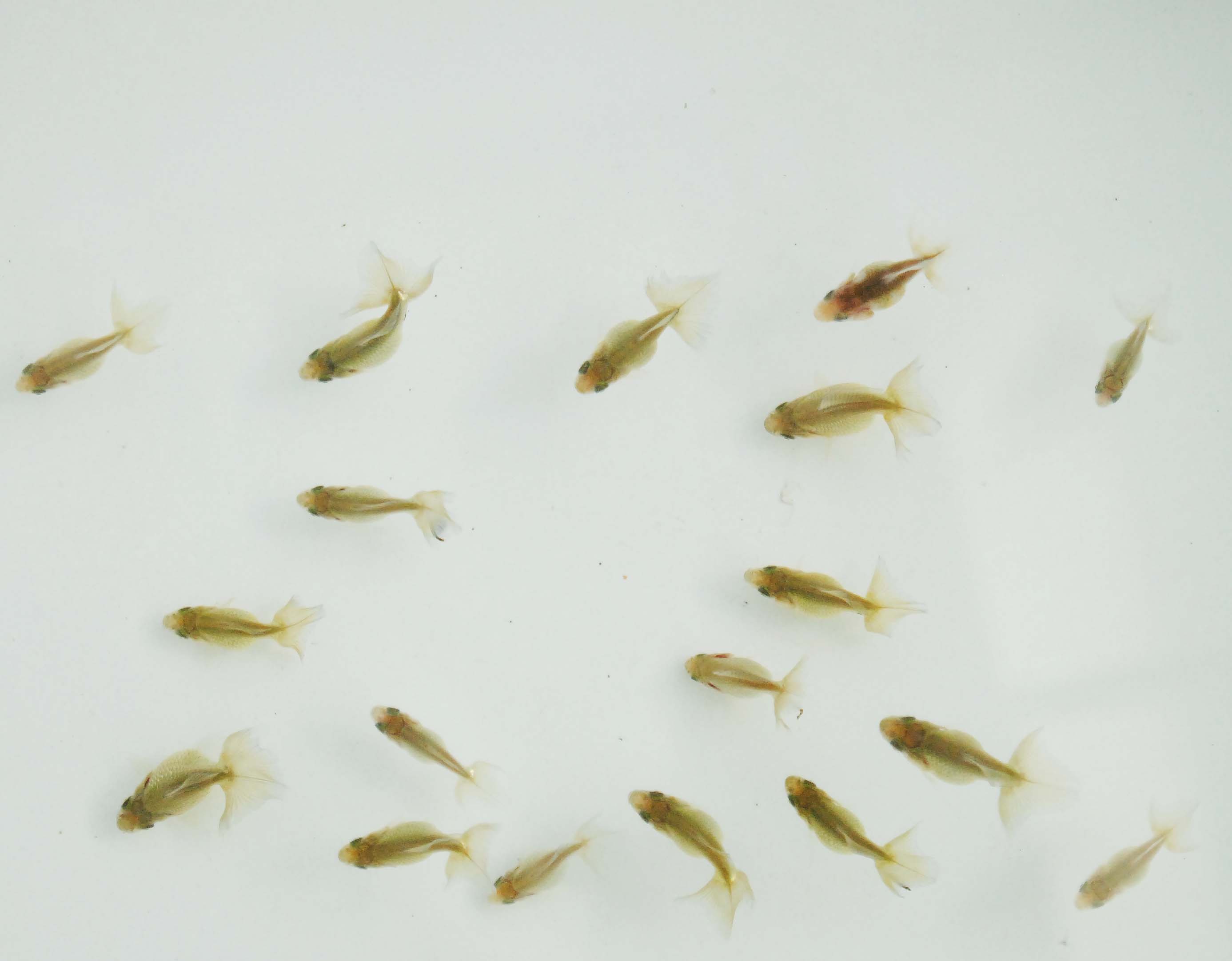 So, I mated her with her siblings (two out of the three males from the seven set). I left one male out since its tail was ordinary. Then it occurred to me that pairing her up with his uncle (the male from the original Nagoya set) will be a good option, so I did this in the next occasion. A goldfish usually lays eggs every five days in my place. So, I can have many rounds of breeding in a season. I can pair a single fish with different males. The combinations above already took three rounds of breeding.