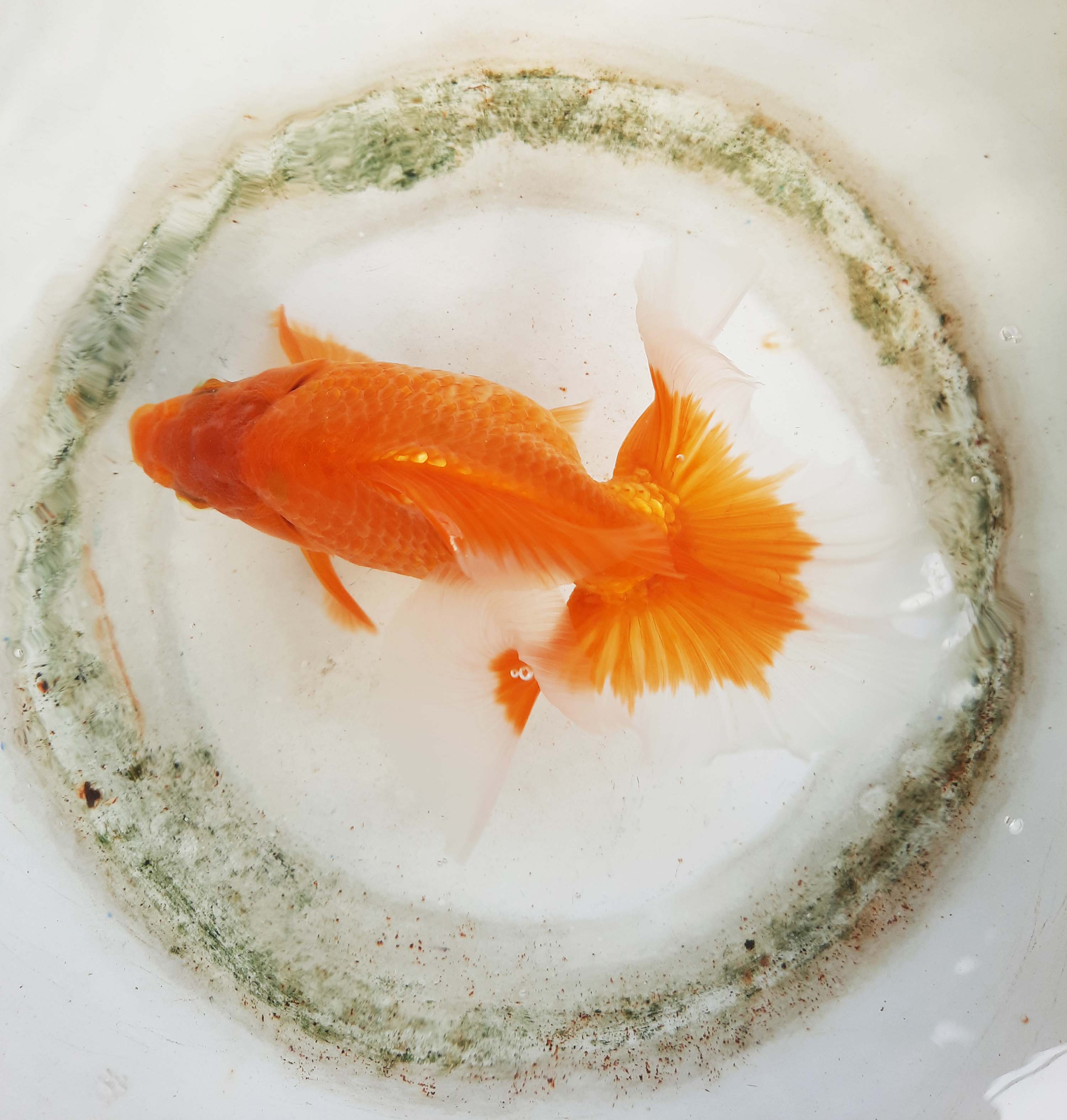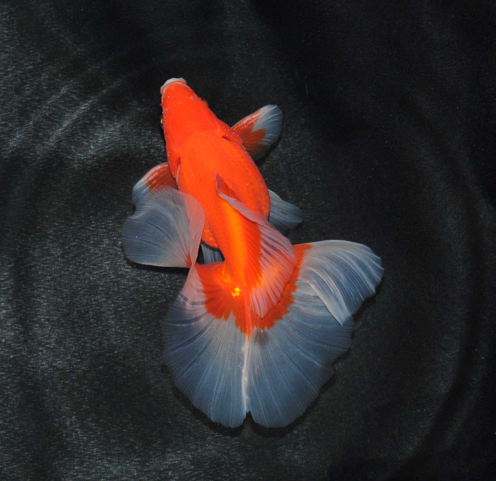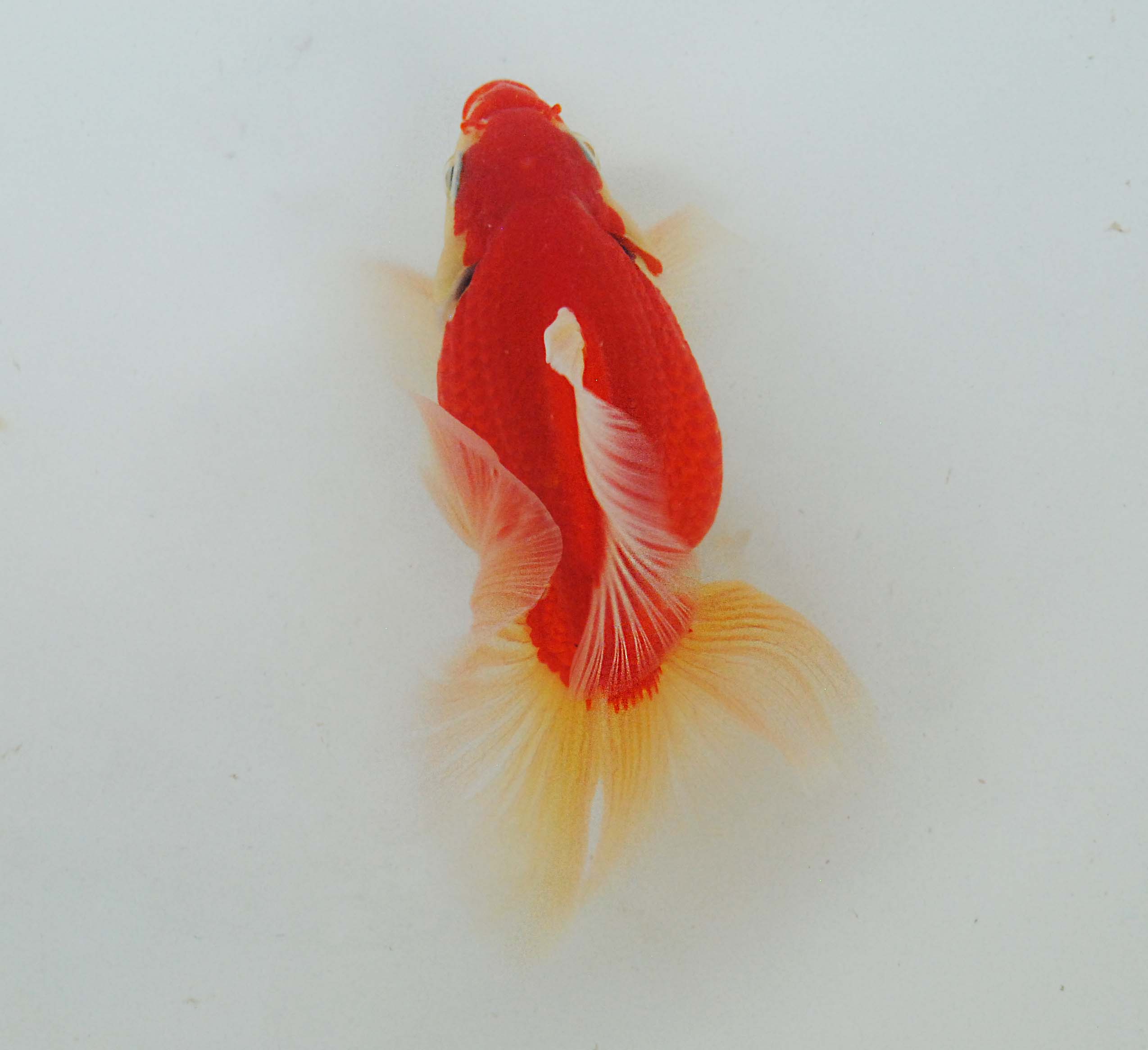 As I mentioned before in another post, I had a very strong red color in a red and white male butterfly goldfish. I called him Beni. He died already. But I managed to cross him with tosakin. Of course I do not get tosakin tail-shape right away. The tail is between tosakin and butterfly. I saved only the fish with the best red color. And this guy is the champion: