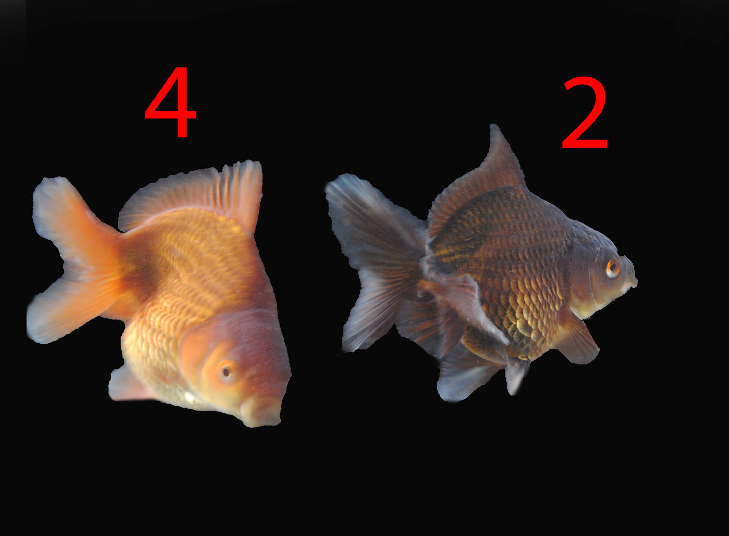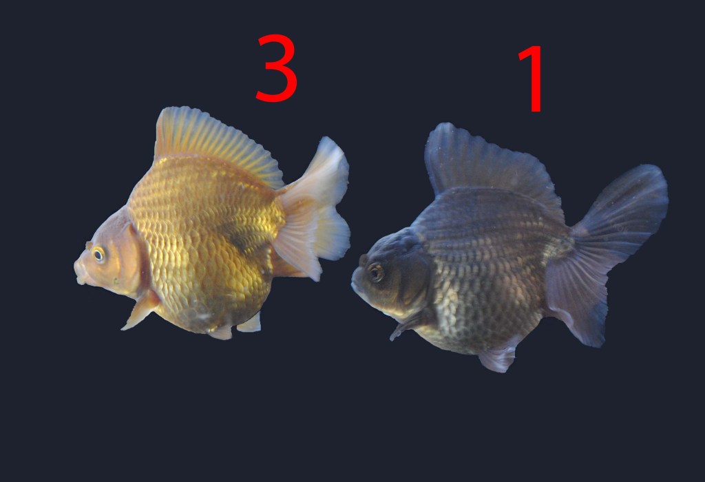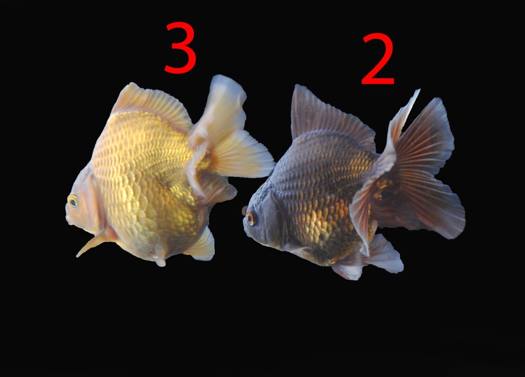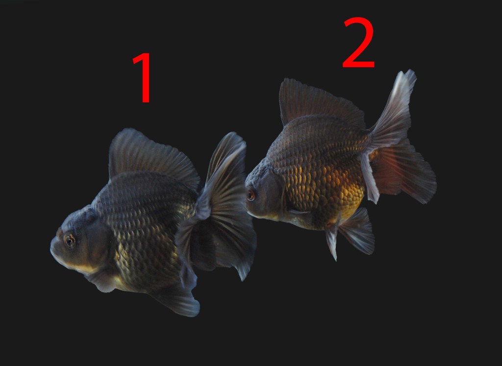 Of course, there is a tricolor (black-red-white) fish in the offspring. The black color almost disappears completely. But this shows that such crossing might yield a tricolor combination. The picture below shows the difference between the black and the brown in red fish.